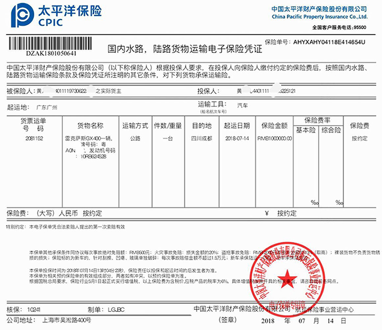 公司与太平洋保险公司长期合作,专业代理轿车运输保险,运输全程零风险,太平洋保险承诺超过价值【30万】以上车辆运输保险费率有优惠, 车辆保险价值越高,保险费率越优惠,最低可以做到千分之一,贵重高档豪华车辆保险详情可以咨询周经理:13713909855. |